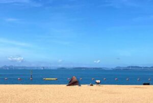 During the hot summer months of our summer vacation, our mother would often take my sister and me to the beach. The waters of the Seto Inland Sea are calm with barely any waves, much like the beaches of Lake Tahoe. We would build sand castles on the shore, bob around in our floaties, and let the time drift peacefully.